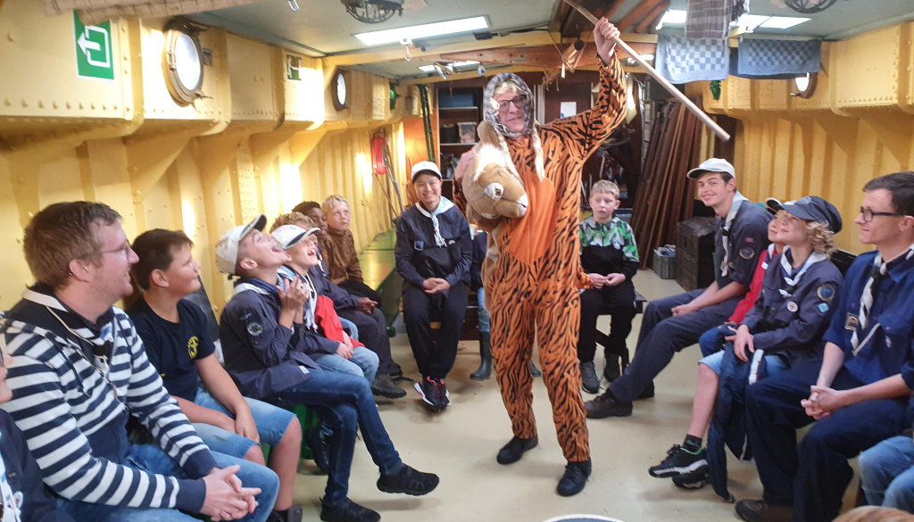 Voor de verkenners is de Hoop meer een varend kamphuis. Zo gaan zij tijdens de zomervakantie 3 weken op kamp naar Friesland. Met de vletten op sleep vaart de Hoop hen dwars door Nederland naar Friesland toe. Het ruim wordt gebruikt om te eten en te slapen, en als het slecht weer is ook om in te spelen. Hierbij moet wel elke keer het ruim verbouwd worden want eten doen we aan tafels en slapen in kooien!